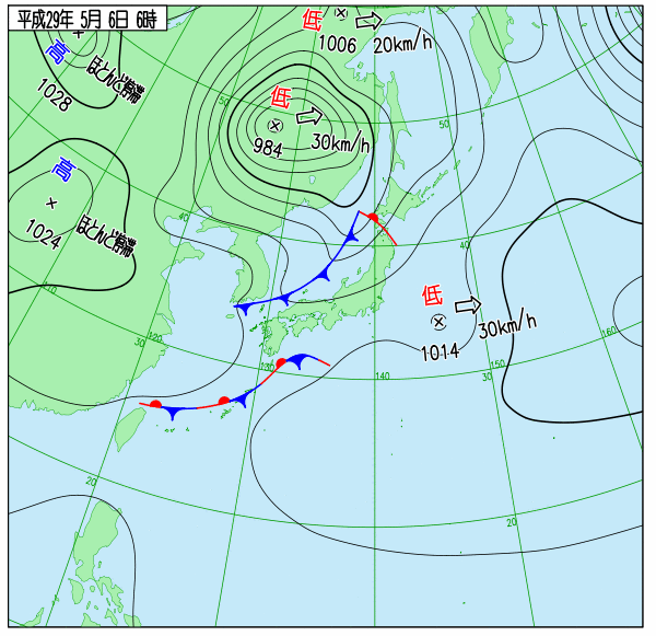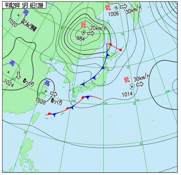 天気図 6時,12時,18時(気象庁)