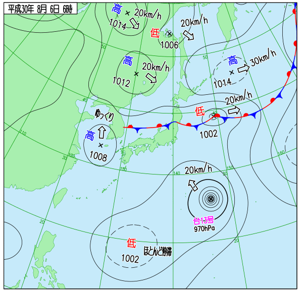 天気図 6時,12時,18時(気象庁)