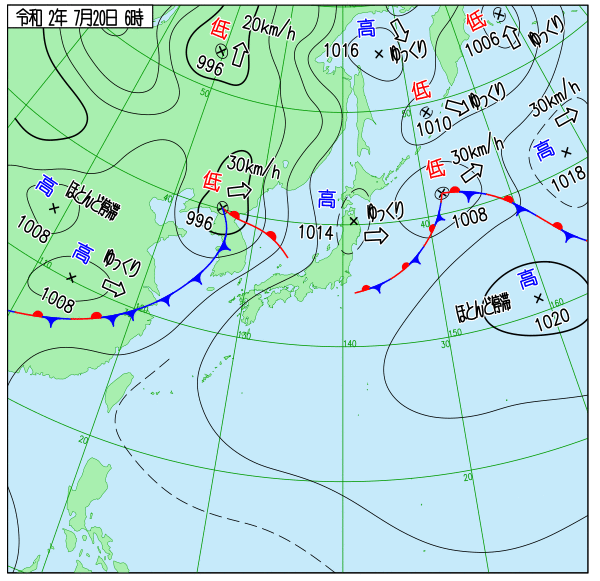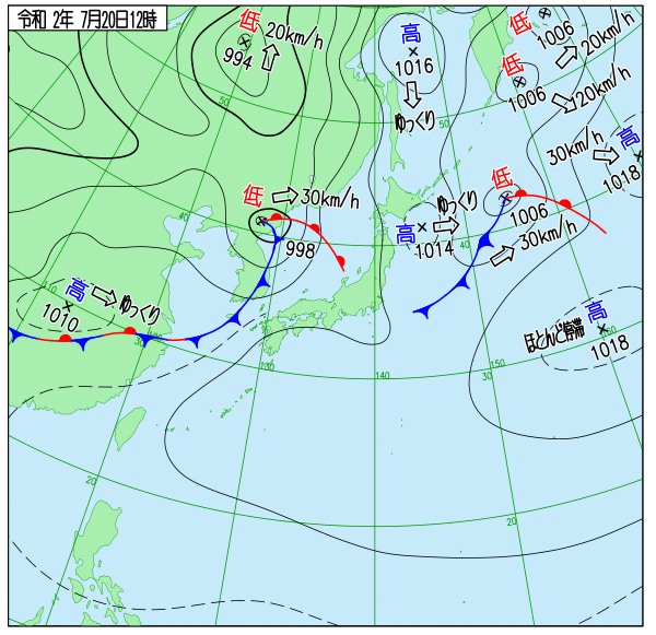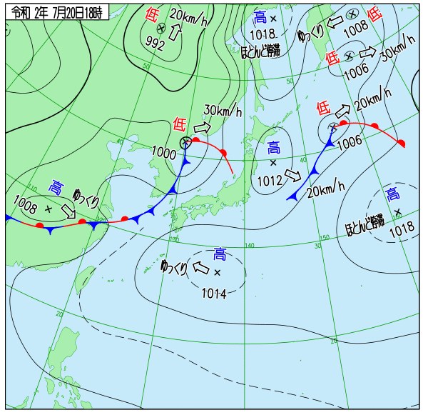 天気図 6時,12時,18時(気象庁)